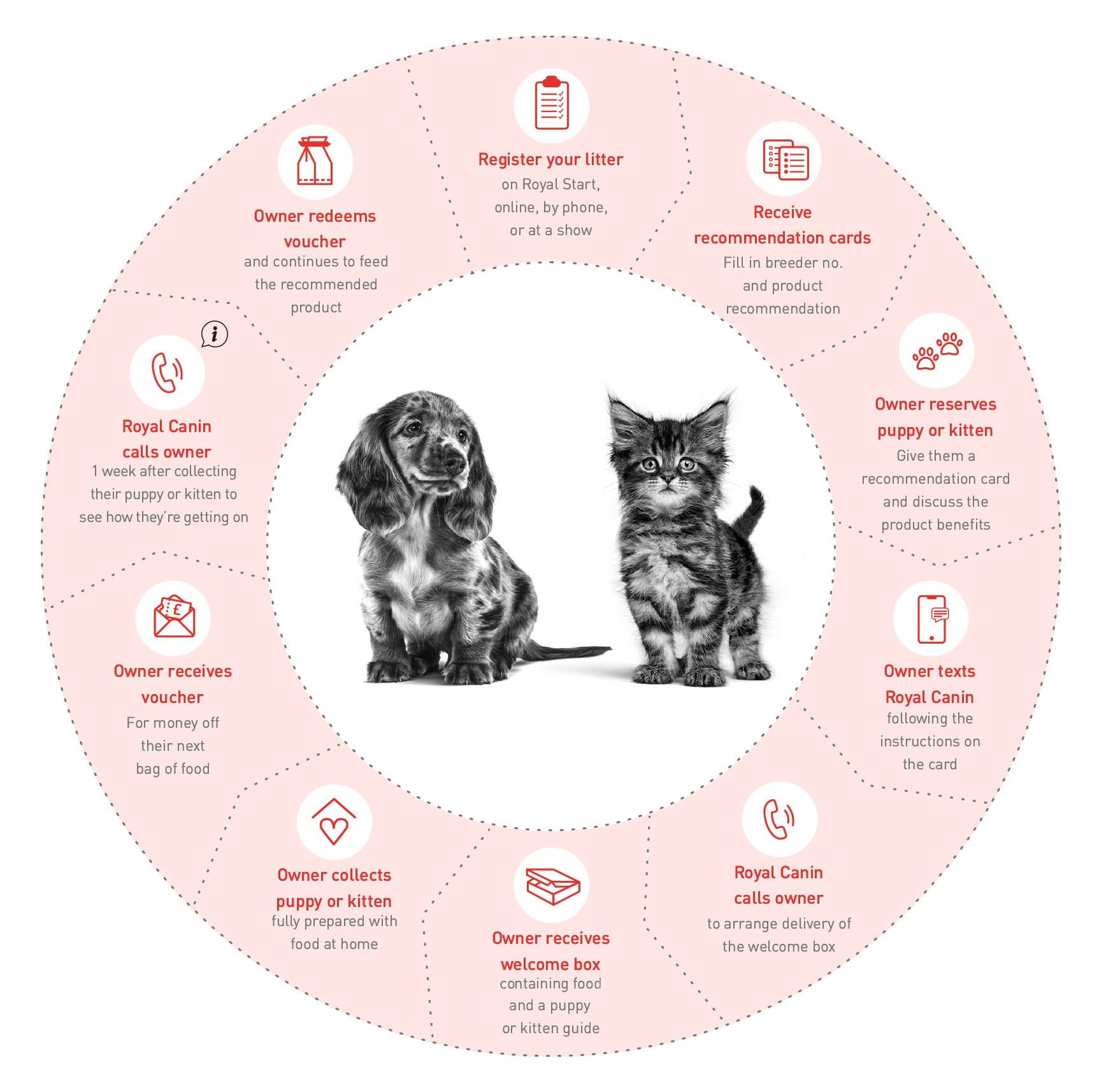 - Nutritional advice provided both by you – the breeder – and ROYAL CANIN® before the puppy or kitten is collected.
